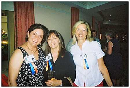 Toni Rizzo, Leila Kane, Kathy Pierce catching up before group shot on Saturday night